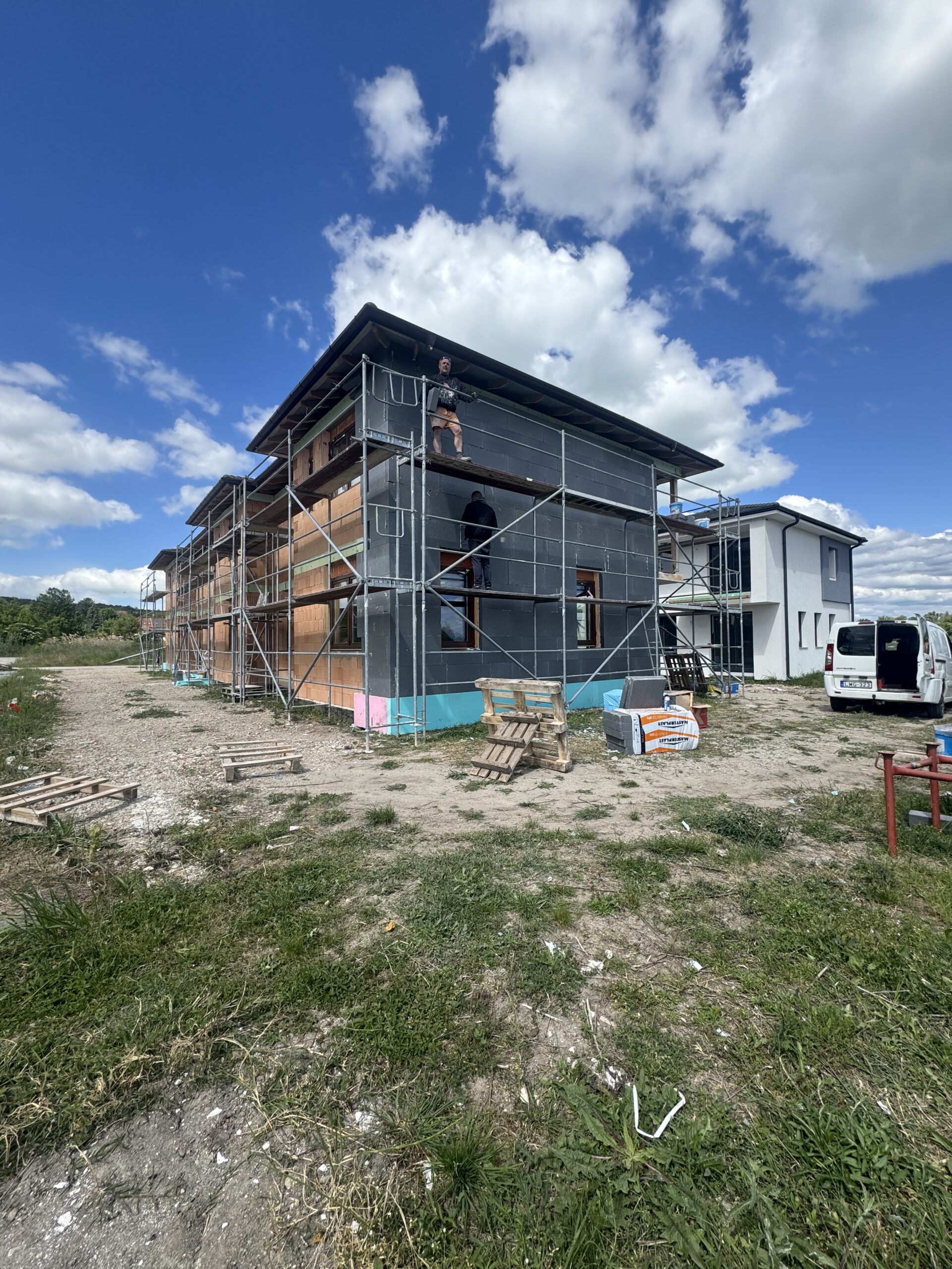 A balatonföldvári projekt során egy új építésű ingatlan kivitelezési és homlokzati munkái készültek. A munkafolyamat több jól elkülöníthető szakaszból állt: szerkezetkész állapot, nyílászárók beépítése, külső hőszigetelési munkák, állványozás, homlokzati felület-előkészítés, glettelés, vakolás / színezés, majd a végleges külső megjelenés kialakítása.